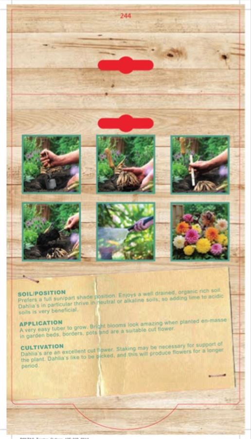 Prefers a full sun/part shade position. Enjoys a well drained, organic rich soil. Dahlia's in particular thrive in neutral or alkaline soils, so adding lime to acidic soils is very beneficial.